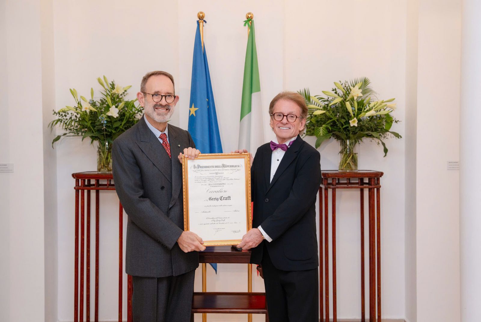 Được sự ủy quyền của Chính phủ Cộng hòa Italia, ngài Đại sứ Cộng hòa Italia tại Việt Nam Marco della Seta đã trao tặng ông Greig Craft Huân chương Công trạng Cộng hòa Italia - huân chương cao quý nhất của quốc gia này dành cho những cá nhân có đóng góp nổi bật trong lĩnh vực nhân đạo và xã hội.