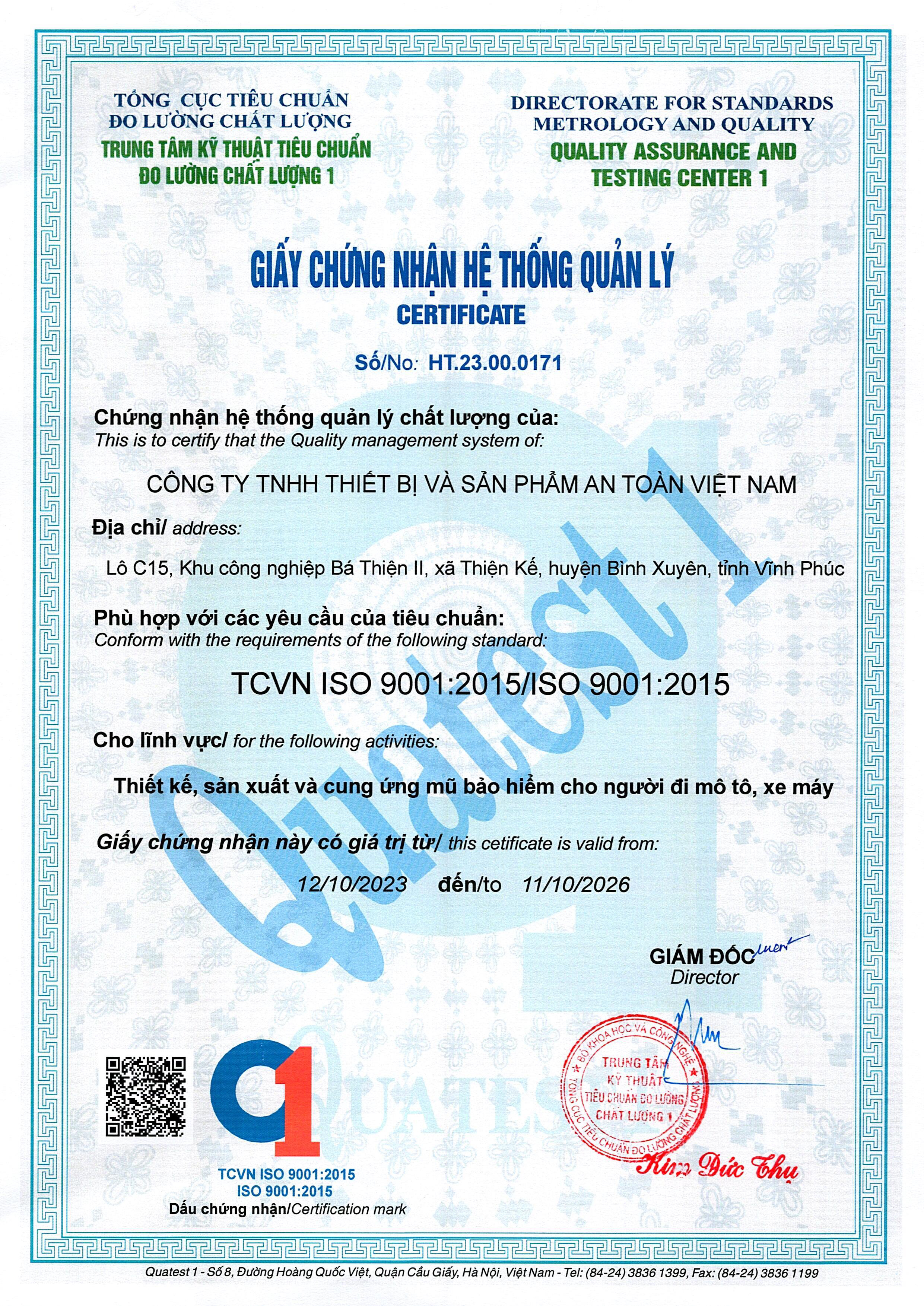 Toàn bộ cơ sở sản xuất của Protec Bicycle Helmet luôn duy trì việc tuân thủ theo hệ thống chất lượng ISO 9001:2015, hệ thống an ninh hàng hóa CTPAT và hệ thống trách nhiệm, đạo đức kinh doanh SMETA. Ngoài ra, sản phẩm của chúng tôi cũng đáp ứng các tiêu chuẩn về an toàn, sức khỏe, ... theo yêu cầu của Khách hàng và của từng quốc gia mà chúng tôi đang phân phối sản phẩm.