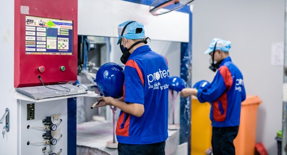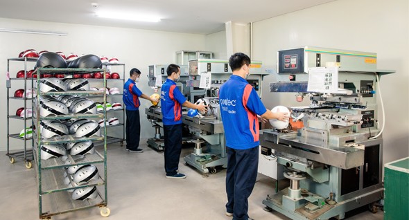 At Protec, helmet shell are painted by mordern technology in the separated painting areas